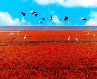 «Լողափ» և «կարմիր» բառերը սովորաբար մտքում երբեք միասին չեն ասոցացվում, սակայն Չինաստանի Պանջինի շրջանում գոյություն ունի իրական կարմիր լողափ, որն ասես անիրական հեքիաթից լինի: Բանն այն է, որ այստեղ հատուկ տեսակի ջրիմուռ է աճում, որը ծաղկելով ապրիլին կանաչ երանգ է ունենում, սակայն արդեն աշնանն այն փոխում է գույնը` դառնալով վառ կարմիր ու մանուշակագույն: