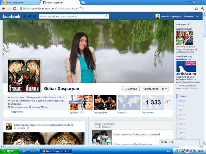 Նրա էջի 5000-ից ավելի ընկերներն ու մոտ 1500 բաժանորդները հետևում են, ինչ բուռն է Գոհարն արձագանքում բռնցքամարտիկի նորություններին ու հաջողություններին: