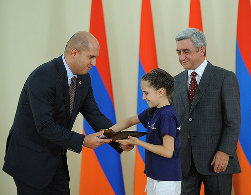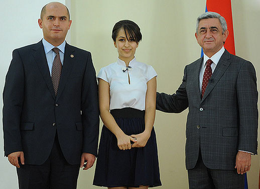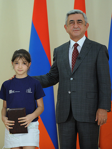 Այսօր ՀՀ նախագահ Սերժ Սարգսյանը իր նստավայրումհյուրընկալել է 2011-2012թթ. ուսումնական տարվամեդալակիր շրջանավարտների և առարկայականօլիմպիադաներում պարգևներ ստացածդպրոցականների հետ։ Կից ֆոտոշարքում այն պայծառերեխաներն են, ովքեր 12 տարի շարունակ ջանք ուեռանդ չեն խնայել ու մեծ նվիրումով տրվել են իրենցուսմանը: Նայում ես նրանց դեմքերին ու զգում, որ, հա՛,հենց նրանք են մեր վաղվա ապագան: