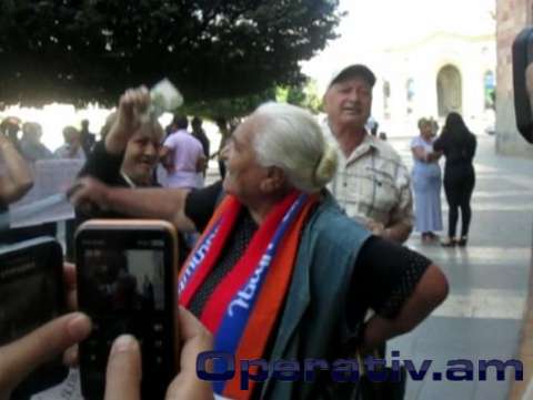 Այսօր ՀՀ կառավարության դիմաց ՀՀԿ տատիկի և այլ ցուցարարների միջև վեճ ծագեց: Մինչ նա խոսում էր Սփյուռքի և Հայաստանի ամուր կապերի անհրաժեշտության մասին, ցուցարարներից մեկը փորձեց միջամտել ելույթին, ինչին ի պատասխան հանրապետական տատիկը գործի դրեց իր ձեռնափայտը: