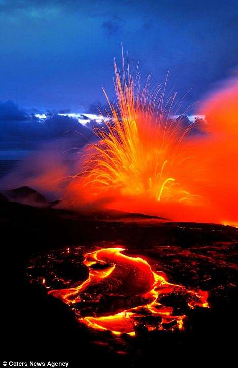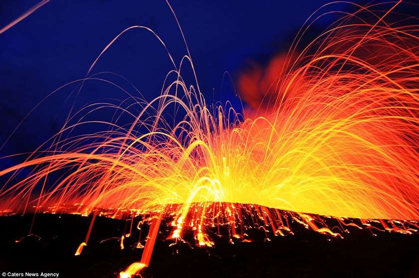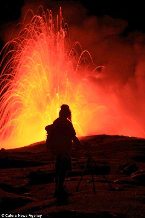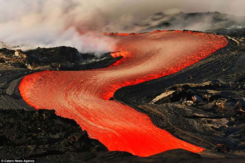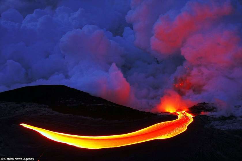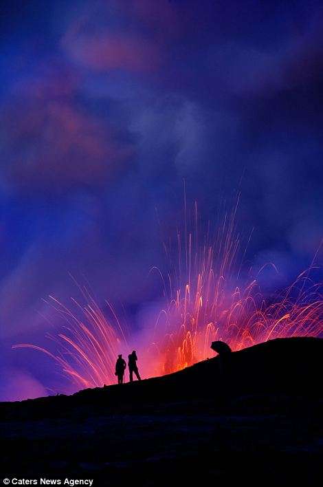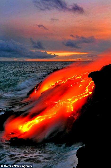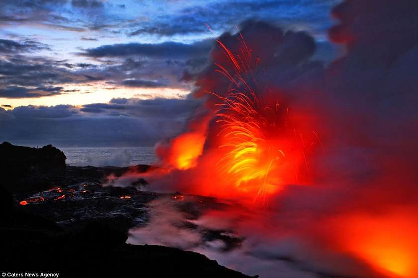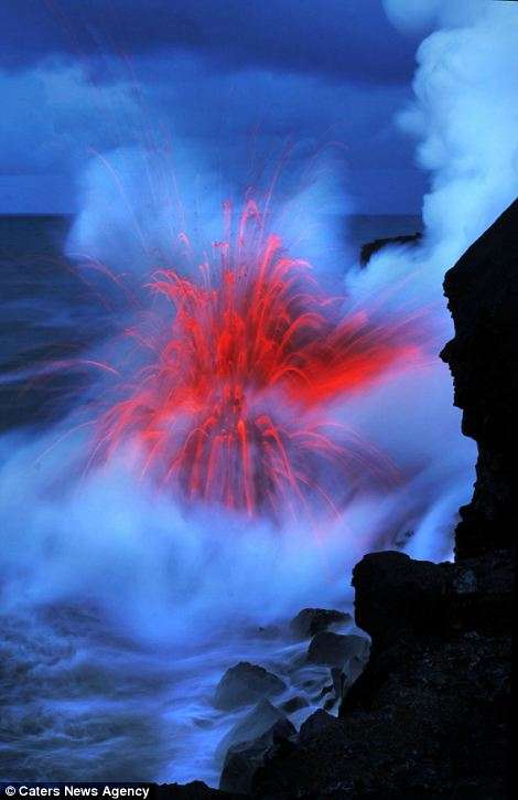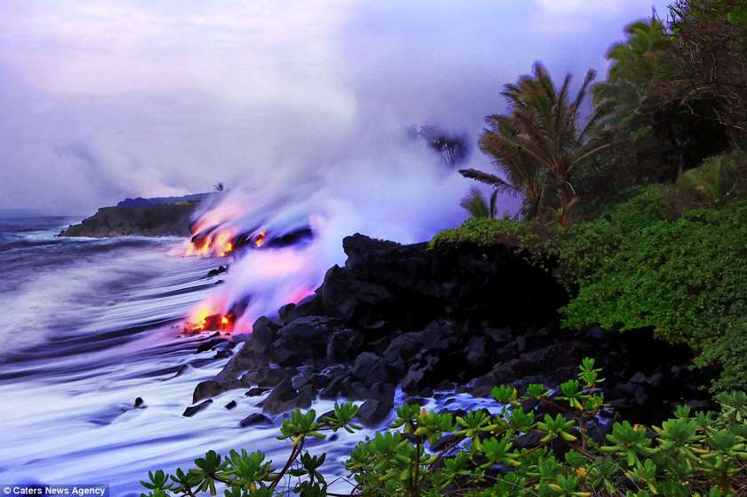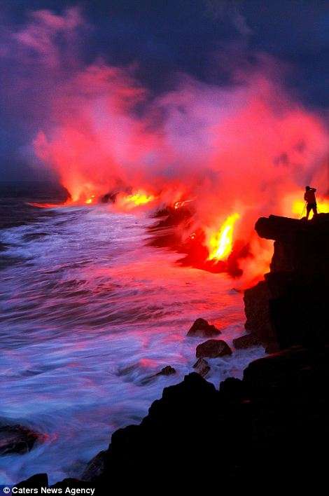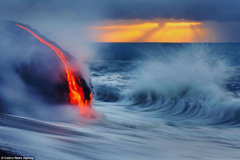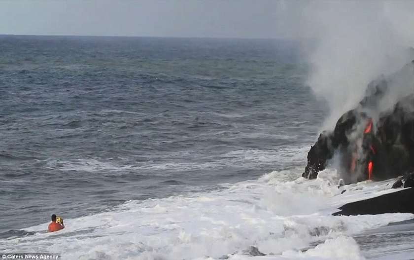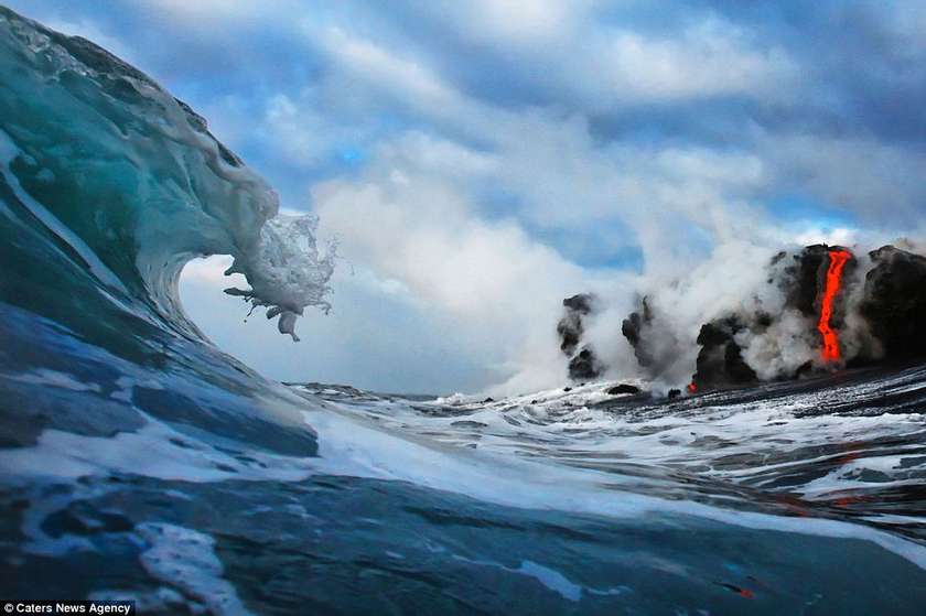 Այս երկու լուսանկարիչները ռիսկի են դիմում իրենց կյանքը, որպեսզի իրականացնեն այս ցնցող լուսանկարները` լավայի և ծովի հակամարտության պահին: Նիկ Սելվեյը (28 տարեկան) և Սի Ջի Կեյլը (35 տարեկան) 43 աստիճան ջերմությամբ ջրերում ընդամենը մի քանի մետր են հեռու կանգնած պայթող լավայի շիթերից: