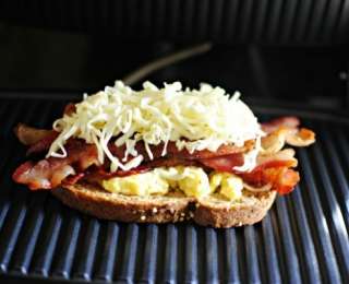 Վերջում հացի վրա քսում ենք կարագ,ավելացնում քերած կարագը,պմլետն ու բեկոնը,վրայից էլ մյուս շերտ հացով ծածկում ու տոստերի մեջ տաքացնում