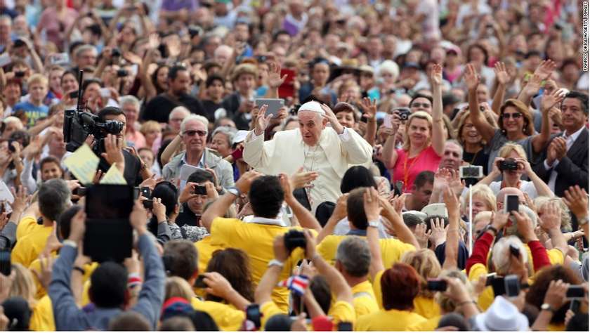 Ֆրանցիսկոս Պապը շփվում է հավատացյալների հետ Վատիկանի Սբ. Պետրոսի հրապարակում, հոկտեմբերի 15։