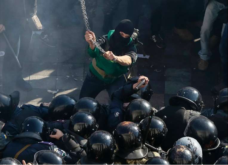 Հոկտեմբերի 14-ին Կիևի կառավարական շենքի մոտ ցուցարարը բախվում է իրավապահ մարմինների հետ։ Ցուցարարները պահանջում էին ազատ արձակել քաղբանտարկյալներին։