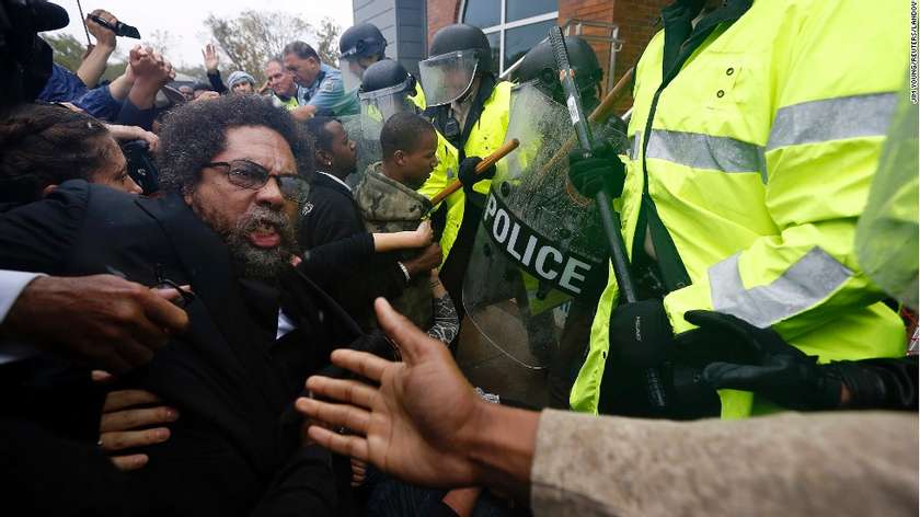 Քորնել Ուեսթ անունով ակտիվիստը հոկտեմբերի 13-ին Միսսուրիի Ֆերգուսոն բնակավայրում ոստիկանության հետ հրմշտոցի ժամանակ։ Ոստիկանությունը հայտնել է, որ Ուեսթն ու 42 այլ մարդիկ ձերբակալվել են «Բարոյական երկուշաբթիի» երթի խաղաղ ընթացքը խախտելու համար։ Ցուցարարները պահանջում էին Դարեն Ուիլսոնի ձերբակալությունը. այն ոստիկանի, ով օգոստոսին հրազենային կրակոցով սպանել էր անզեն անչափահաս Մայքլ Բրաունին։