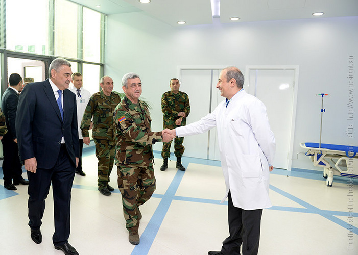 Աշխատանքային այցի ավարտին Նախագահ Սերժ Սարգսյանը Ստեփանակերտի հանրապետական բժշկական կենտրոնում ներկա է գտնվել անգիոգրաֆիկ կենտրոնի բացմանը: Բժշկական այս կենտրոնում կատարվելու են սրտի և մնացած բոլոր օրգանների անոթների ստենտավորումները, ախտորոշվելու և բուժվելու են անոթային խնդիրներ ունեցողները: