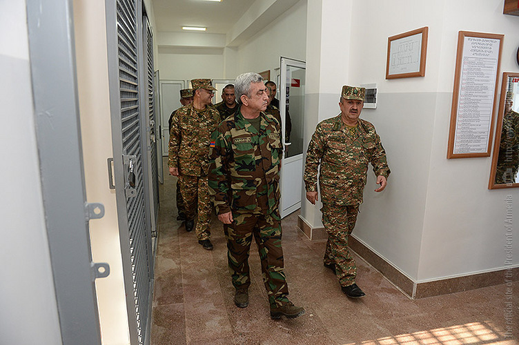 Սերժ Սարգսյանը եղել է նաև բանակային բնագծում, դիտել ստորաբաժանումների գործողությունները, ներկա գտնվել նոր զորանոցի ու զինավանի բացման արարողություններին, ապա խրախուսել ծառայության մեջ աչքի ընկած զինծառայողներին: