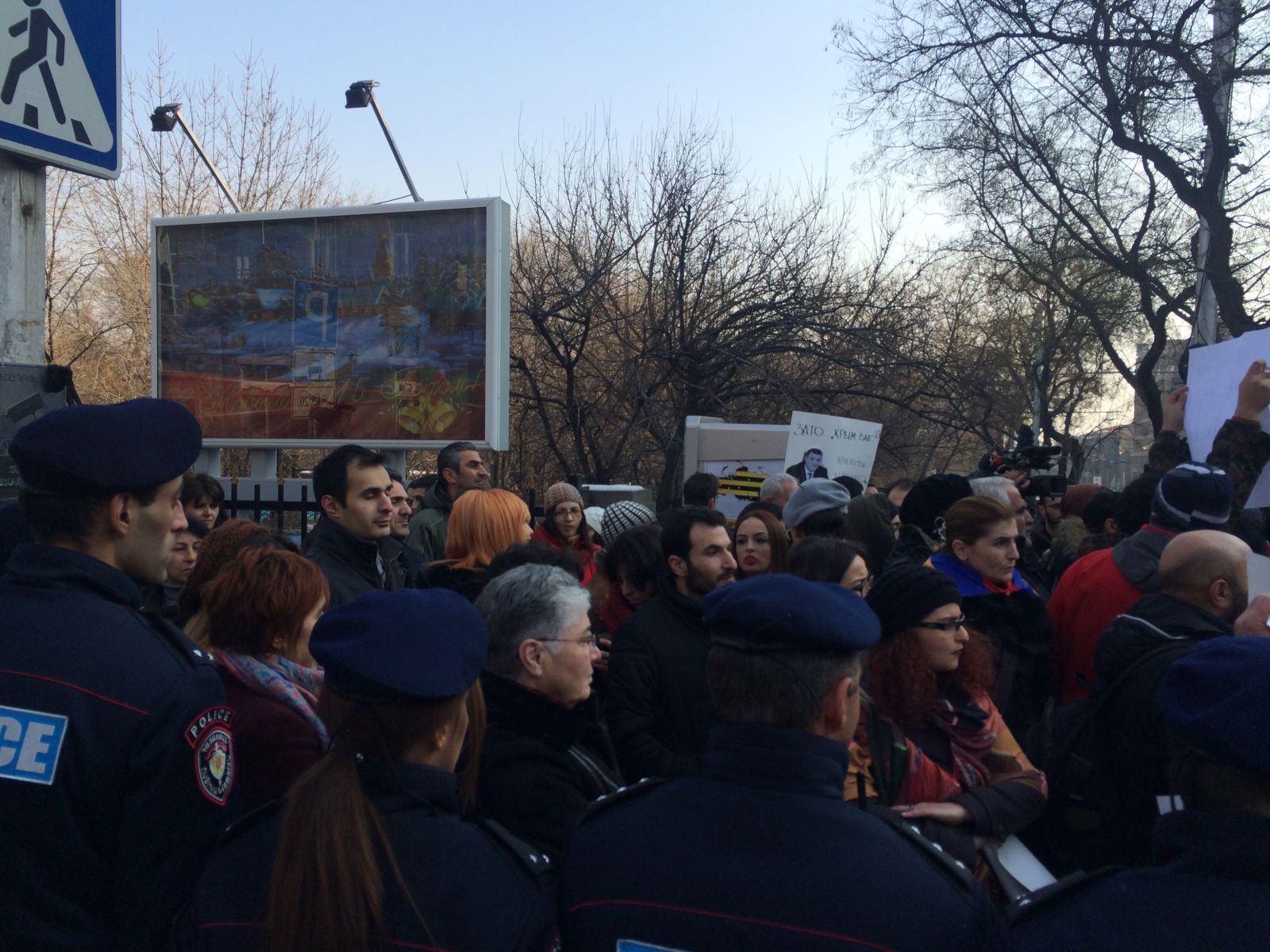 Քաղաքացիները վանկարկում են «ազատ, անկախ, Հայաստան»։