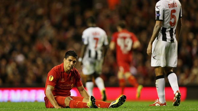| Պահ` "Լիվերպուլ" - Ուդինեզե" հանդիպումից, դժգոհ դեմքով Լուիս Սուարեսն է |