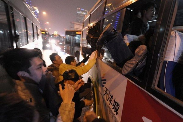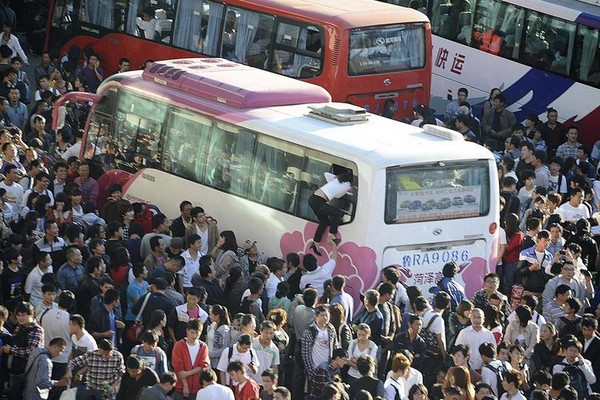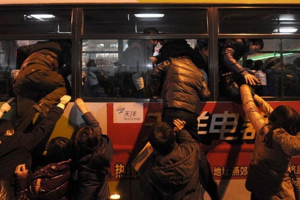 17-միլիոնանոց Պեկին քաղաքը մարզերից հարյուր հազարավոր մարդկանց է ձգում, աշխատելով ամբողջ աշխատանքային շաբաթը, ուրբաթ օրը մարդիկ ետ են վերադառնում դեպի իրենց գյուղերը: Կեսօրից հետո պեկինյան ավտոկայարաններում արդեն ասեղ գցելու տեղ չկա.
