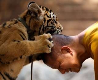 Բուդդիստական Վագրերի տաճարը մեր մոլորակի ամենահետաքրքիր վայրերից մեկն է, որտեղ կատվազգի հսկայական այս գիշատիչները խաղաղության ու ներդաշնակության մեջ են ապրում իրենց շրջապատող մարդկանց հետ։ Տաճարում ավելի քան 100 վագր է ապրում, և բոլորովին անսովոր չէ տեսնել, թե ինչպես են բուդդիստ վանականները շշով ջուր տալիս վագրերին։ Լուսանկարիչներ Athit Perawongmetha-ի և Sakchai Lalit-ի շնորհիվ կարող ենք վիրտուալ փոքրիկ այց կատարել ու տեսնել, թե ինչպիսին է կյանքը Վագրերի տաճարում։