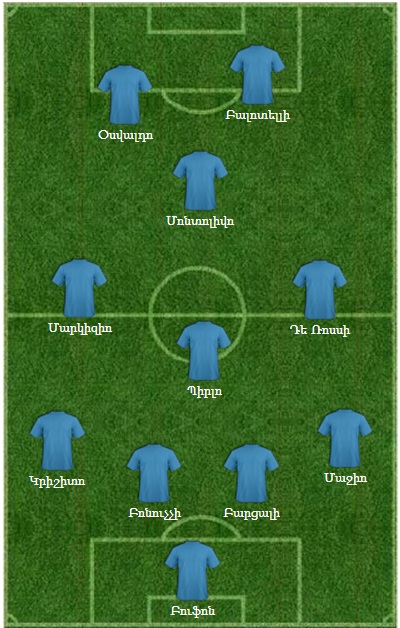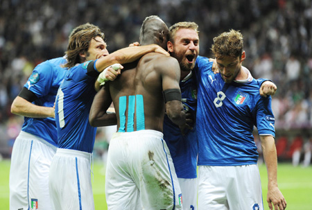 Իտալացիների հարձակումը հիմնված է եռանկյունու վրա, որի մի գագաթին Մոնտոլիվոն է: Վերջինս գործելու է կիսապաշտպանությունում` երկու հարձակվողների խորքում: Մոնտոլիվոն այս խաղում այդ դիրքում փոխարինում է Դիամանտիին: Առջևի գծում այս խաղի համար Պրանդելին նախատեսել է Օսվալդոյին և Բալոտելիին: Բալոտելիի հաջող խաղի դեպքում, իհարկե, մերոնք լուրջ խնդիրներ կունենան, իսկ հակառակ դեպքում հարձակվողների այս ընտրությունը կարող է և դրական էֆեկտ ունենալ: Օսվալդոն առավելապես փոխանցումներից կախվածություն ունեցող ֆուտբոլիստ է, և Բալոտելիի ձախողման դեպքում /ինչը նույնքան հավանական է, ինչքան նրա փայլուն խաղը/ իտալացիների առջևի գիծը կարող է ամբողջությամբ զրկվել ինքնուրույնությունից և մնալ Պիրլոյի «ուսերին»: Նման դեպքի համար, իհարկե, Պրանդելին ունի փոխարինողների հնարավորություն` ի դեմս Դեստրոյի և Ջիովինկոյի, սակայն ամեն դեպքում սա հնարավոր սցենար է, որը պետք է նկատի ունենալ: