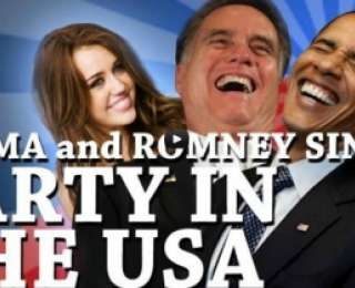 Բարաք Օբաման և Միթ Ռումնին կատարում են Մայլի Սայրուսի Party in the USA երգը