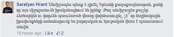 Փաստորեն Երևանի քաղաքապետարանից նրան տեղյակ չէին պահել լուսանկարն օգտագործելու մասին: