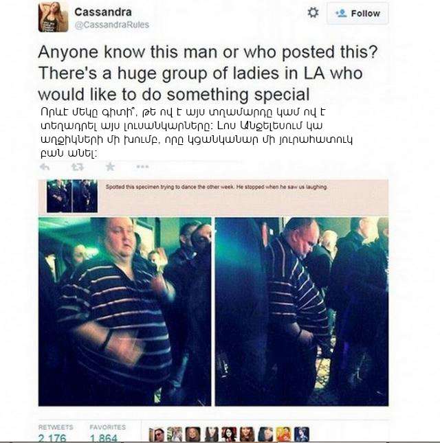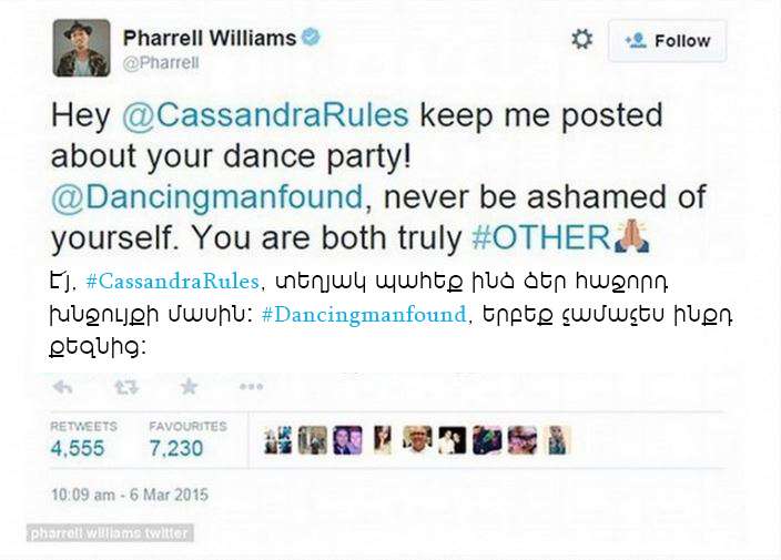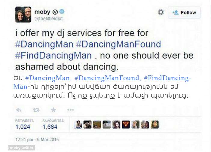 Վերջերս ներկայացվեց համացանցի լավ ու վատ կողմերի մասին հրաշալի պատմություն։ Մարդիկ ծաղրում էին այն մարդուն, ով ցանկանում էր ակումբում պարել, և նրա լուսանկարը տեղադրեցին համացանցում։ Արդյունքում Twitter-ում հավաքվեց ահռելի քանակությամբ թիմ, որը փորձեց ամեն կերպ պաշտպանել «պարող մարդուն». նրանք Մոբիի և Ֆարրել Ուիլյամսի գլխավորությամբ մի մեծ խնջույք կազմակերպեցին։