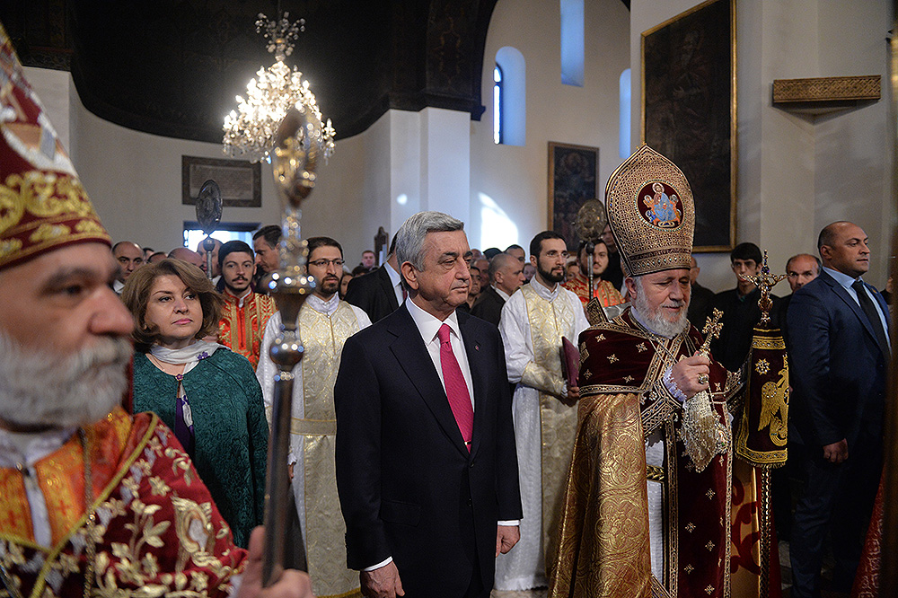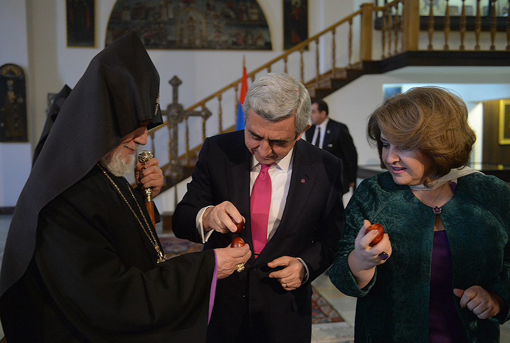 Նախագահ Սերժ Սարգսյանը և տիկին Ռիտա Սարգսյանը Մայր Աթոռ Սուրբ Էջմիածնում ներկա են գտնվել Հիսուս Քրիստոսի հրաշափառ Հարության՝ Սբ. Զատկի տոնի առթիվ մատուցված Հայրապետական Սբ. Պատարագին: