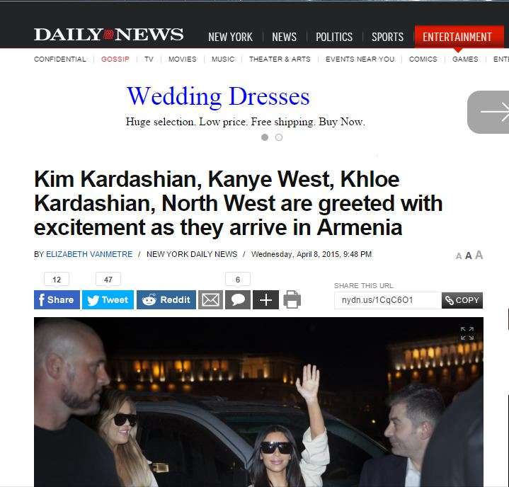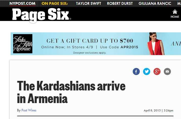 Համաշխարհային լրատվական բազմաթիվ կայքեր անդրադարձել են Քարդաշյանների՝ դեպի հայրենիք ուղևորությանը.