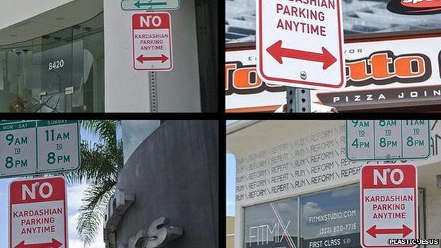 Ճանապարհային նշանները, որոնք սովորական են ամերիկացիների համար, բոլոր վայրերում գրեթե նույնն են՝ դրանք արգելում են մեքենայի կայանելը, բայց դրանց վրայի գրությունը հատուկ հասցեատեր ունի. «Քարդաշյանների համար կայանումն արգելվում է ցանկացած ժամանակ»: