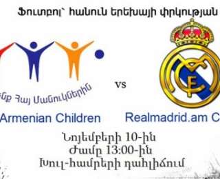 Realmadrid.am-ը շարունակում է բարի ավանդույթները: Արդեն երրորդ խաղը` հանուն կյանքի, և նորից փոքրիկ երեխա: Նախ՝ 4-ամյա Էրիկը, հետո 5-ամյա Էլենը, հիմա էլ` 4-ամյա Ռիտան: Չորսամյա Ռիտա Ղարիբյանը տառապում է հազվադեպ հանդիպող մաշկային հիվանդությամբ՝ Վեբեր–Կոկեյնի բշտային էպիդերմոլիզով: Այս հիվանդությունը ժառանգական է և արտահայտվում է բշտերի առաջացմամբ՝ ոտքերի, ձեռքերի և ոտնաթաթի մաշկի վրա, որոնք հետագայում բացվում են ՝ առաջացնելով էրոզիաներ: Փոքրիկի մոտ առաջացել են բարդություններ, որոնք արտահայտվում են եղունգների թափվելով: Այս խնդիրների պատճառով Ռիտան չի կարողանում լիարժեք վայելել իր մանկությունը, խաղալ բակում, հաճախել մանկապարտեզ կամ ոտքերը չցավեցնող կոշիկներ գտնել: Փոքրիկին ախտորոշիչ հետազոտություններ անցակցնելու համար համաձայնել է ընդունել Իսրայելի Խաիմա Շեբայի անվան հանրապետական հիվանդանոցը: Ընտանիքին միջոցներ են անհրաժեշտ մոտ 1300 ԱՄՆ դոլար արժողությամբ ախտորոշիչ հետազոտությունների, օրական` 150 ԱՄՆ դոլար ապրուստի, ինչպես նաև, ավիատոմսերի ձեռքբերման համար: Բուժման համար անհրաժեշտ գումարը Իսրայելի բժիշկները կհայտնեն հետազոտությունն իրականացնելուց հետո: Բոլոր ցանկացողները կարող են նաև իրենց օգնությունը ցույց տալ փոքրիկին` գումար փոխանցելով նրա հաշվեհամարներին՝ Ameriabank - 1570014834430100 (AMD), 1570014834430158 (RUB), 1570014834430101 (USD), 1570014834430146 (EUR): Բոլոր հաշվեհամարները բացված են փոքրիկի հոր՝ Կարեն Ղարիբյանի անունով: Փոքրիկի առողջացմանը կնպաստեն նաև Realmadrid.am-ի ֆան ակումբը և «Օգնենք հայ մանուկներին» խումբը` անցկացնելով բարեգործական հանդիպում: Միջոցառման ընթացքում դահլիճում տեղադրված կլինեն դրամահավաքի համար նախատեսված արկղեր, և բոլոր ցանկացողները կկարողանան իրենց հնարավորության սահմաններում գումար նվիրաբերել փոքրիկին օգնելու համար: Ստացված ողջ հասույթը կփոխանցվի Ռիտայի համար բացված հաշվեհամարին: Այսպիսով, հանդիպում ենք նոյեմբերի 10-ին, ժամը 13:00-ին, խուլ-համրերի դահլիճում (հասցեն`Ե. Կողբացի 65): Սպասում ենք բոլորիդ: Միացե´ք միջոցառման իվենթին ֆեյսբուքում: Հանդիպման վայրը` քարտեզով.