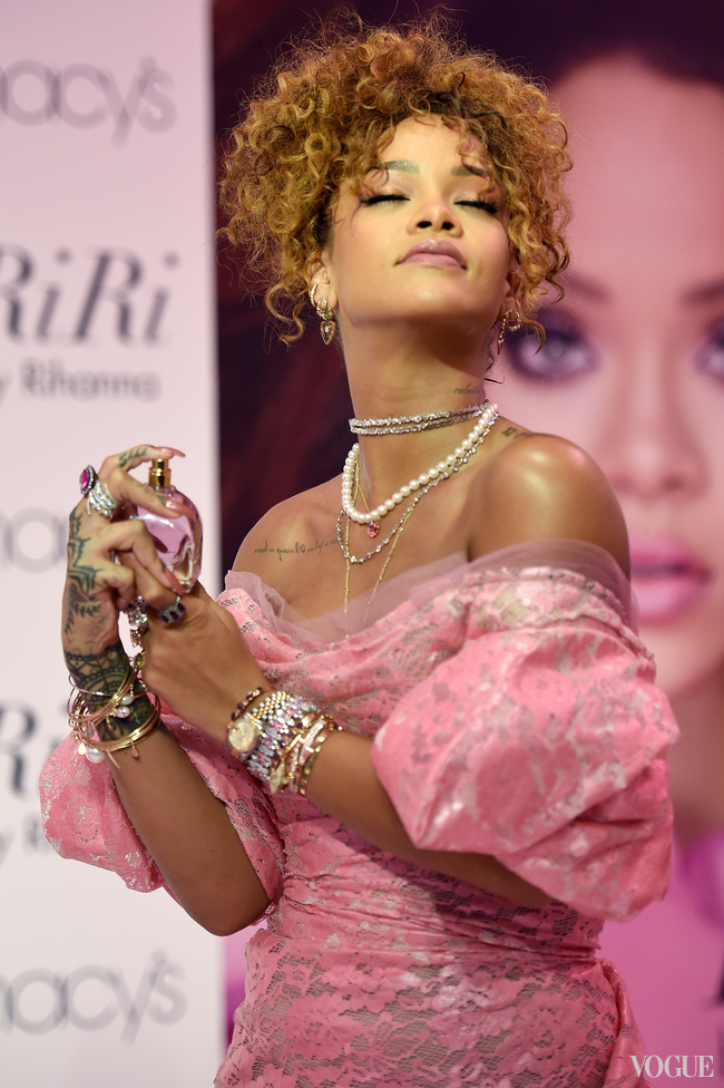 Օրերս երգչուհի Ռիհաննան ներկայացրել է իր նոր` RiRi օծանելիքը: Այդ օրը հանրությանը ներկայանալու համար աստղն ընտրել էր բաց ուսերով վարդագույն կարճ զգեստ և հագուստի երանգին համապատասխան կոշիկներ: