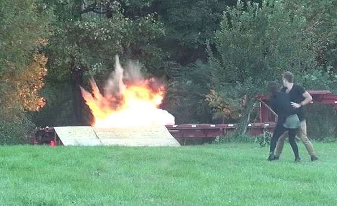 Վիդեոբլոգեր Ռոման Էտվուդը չար կատակ խաղաց կնոջ` Բրիթնի Սմիթի գլխին` բեմադրելով կվադրոցիկլի պայթյունը, որը, իբր թե, վարում էր նրանց փոքրիկ որդին։ Ռոմանը հեռակառավարվող կվադրոցիկլի վրա երեխայի մանեկեն դրեց և բաց թողեց։ Թռչելով ցատկահարթակի վրայով՝ այն իբր թե պայթեց։