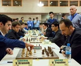 Երեկ Մակեդոնիայի մայրաքաղաք Սկոպիեյում շարունակվող շախմատի ակումբային թիմերի չեմպիոնների Եվրոպայի գավաթի խաղարկությունում կայացան 5-րդ տուրի հանդիպումները: Տղամարդկանց մրցաշարում ՌԴ-ի չեմպիոն Նովոսիբիրսկի «Սիբիրը», որի կազմում հանդես են գալիս աշխարհի նախկին չեմպիոն, ռուսաստանցի Վլադիմիր Կրամնիկն ու այդ կոչման գլխավոր հավակնորդներից մեկը` Լևոն Արոնյանը, մրցաշարի թերևս ամենակենտրոնական մրցամարտում 3,5:2,5 հաշվով պարտության մատեց ստուգատեսի գլխավոր ֆավորիտ համարվող ադրբեջանական «Սոկարին»: Վերջինս, որի կազմը աշխարհահռչակ գրոսմայստերներով է համալրված ու ասես աշխարհի հավաքականն է հիշեցնում, մինչ այդ գերազանց էր հանդես գալիս ու «Սիբիրի» նման 4 անընդմեջ հաղթանակ էր տարել, այս անգամ չկարողացավ դիմակայել ՌԴ-ի չեմպիոնին: «Սիբիրի» կազմում հատկապես նշանակալի ու վճռորոշ եղան 1-ին խաղատախտակի վրա Կրամնիկի սպիտակներով բուլղարացի Վեսելին Տոպալովի, իսկ 3-րդ խաղատախտակի վրա Ալեքսանդր Գրիշչուկի, վերջերս ԱՄՆ-ի քաղաքացիություն ստացած իտալացի շախմատիստ Ֆաբիանո Կարուանայի նկատմամբ տոնած հաղթանակները, և իհարկե 2-րդ խաղատախտակի վրա Արոնյանի սևերով խաղացած ոչ-ոքին ՖԻԴԵ-ի դասակարգման ցուցակում իրենից 2 աստիճանով վեր կանգնած ու հիմա 5-րդ տեղում ընթացող հոլանդացի Անիշ Գիրիի հետ: Մրցամարտի մյուս երեք պարտիաներն էլ բավական հետաքրքիր ու լարված ընթացք ունեցան: Դրանցում «Սոկարի» կազմում ելույթ ունեցող անգլիացի Մայքլ Ադամսը պարտության մատնեց չինացի Լի Չաոին, իսկ Վան Յու–Ռաջաբով և Կորոբով–Մամեդյարով պատրիաներում ոչ-ոքիներ գրացվեցին: