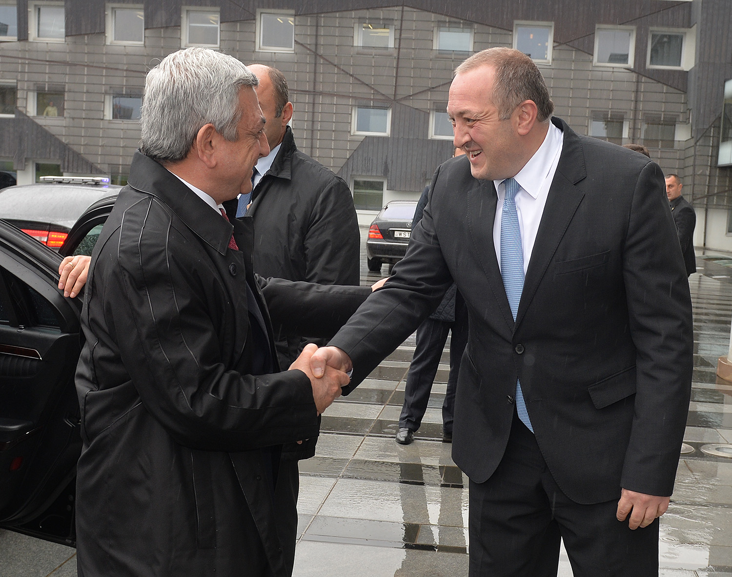 Սերժ Սարգսյանը և Գիորգի Մարգվելաշվիլին հանդիպման արդյունքներն ամփոփել են ԶԼՄ-ների առջև համատեղ հայտարարություններով: