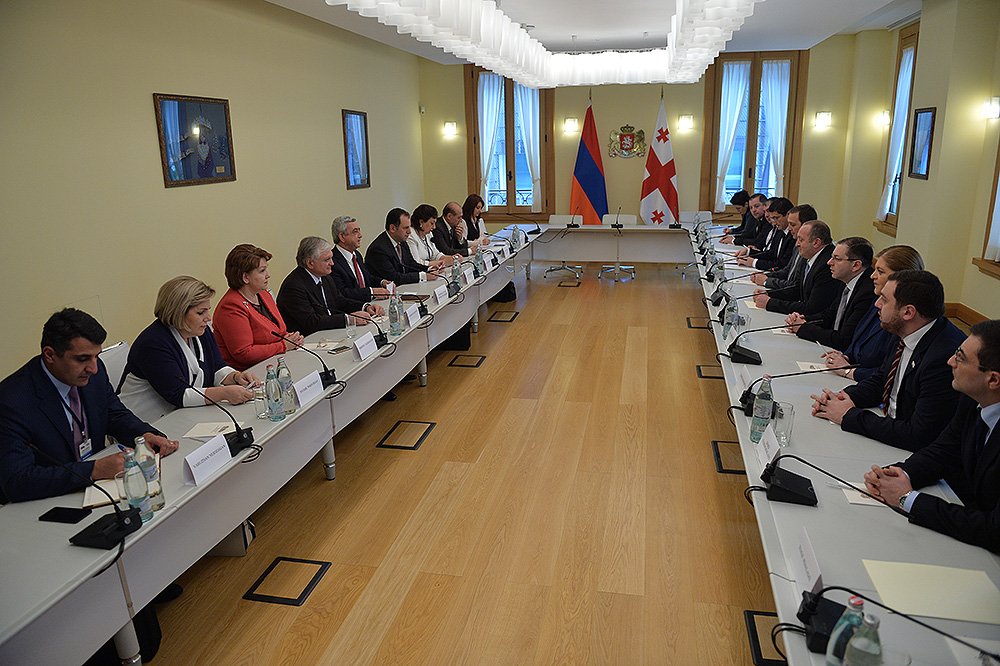 Աշխատանքային այցով Վրաստանում գտնվող Նախագահ Սերժ Սարգսյանն այսօր Թբիլիսիում հանդիպում է ունեցել Վրաստանի Նախագահ Գիորգի Մարգվելաշվիլիի հետ: Երկու երկրների ղեկավարները քննարկել են բարձր մակարդակի հայ-վրացական հարաբերությունների օրակարգը, նախանշել այն առաջ մղելու նոր հեռանկարները, անդրադարձել քաղաքական, տնտեսական, հումանիտար և այլ ոլորտներում փոխգործակցության զարգացմանն ուղղված ընթացիկ ծրագրերին: Նախագահներ Սարգսյանը և Մարգվելաշվիլին երկկողմ և բազմակողմ ձևաչափերով փոխշահավետ նախագծերի իրականացման համար կարևորել են ինտեգրացիոն տարբեր գործընթացների շրջանակներում Հայաստանի և Վրաստանի շարունակական համագործակցությունը: