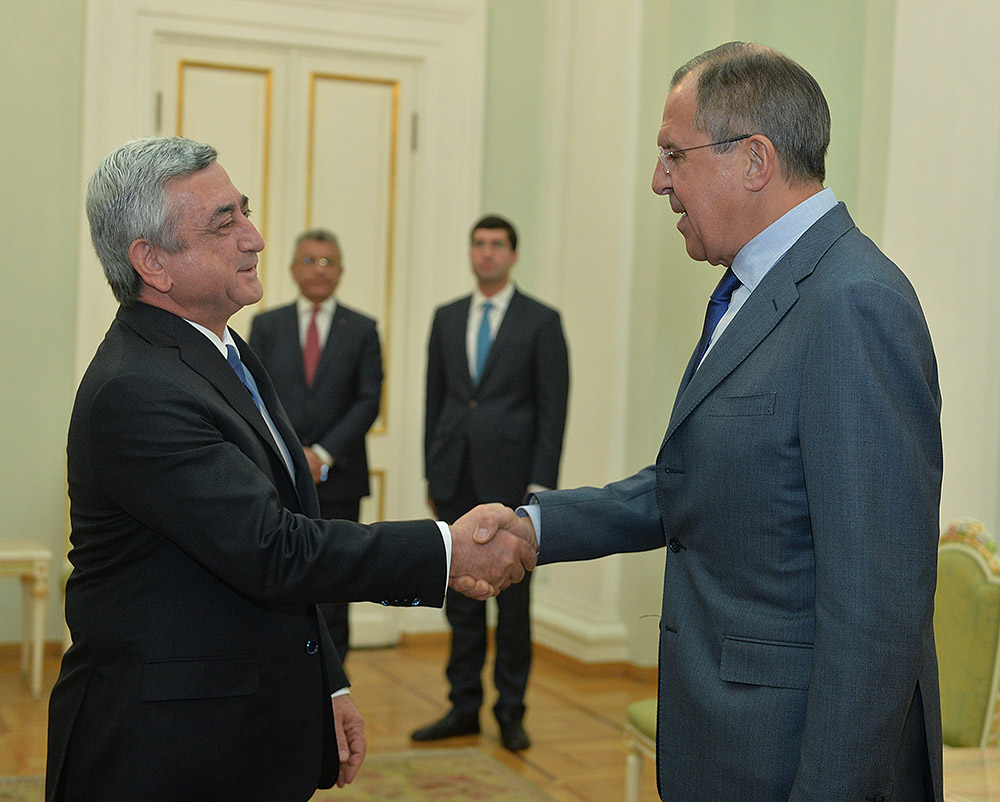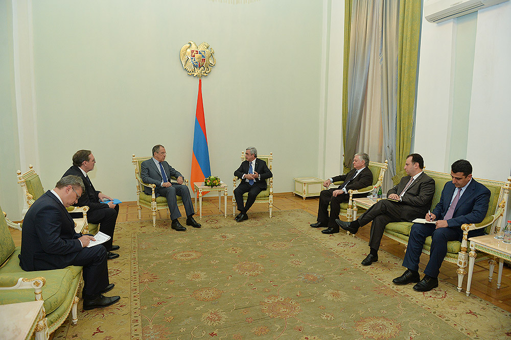Արտգործնախարար Սերգեյ Լավրովը ՀՀ Նախագահին է փոխանցել ՌԴ Նախագահի ջերմ ողջույնները և ընդգծել, որ Վլ. Պուտինը հետևողական է հայ-ռուսական բարձր մակարդակի պայմանավորվածությունները կյանքի կոչելու հարցում: Սերգեյ Լավրովը ևս գոհունակությամբ է փաստել բոլոր ուղղություններով հայ-ռուսական երկկողմ փոխգործակցության արդյունքում արձանագրված առաջընթացն ու դինամիկ զարգացող հարաբերությունները նաև ինտեգրացիոն գործընթացների շրջանակներում: Հայաստանի լիիրավ անդամակցությունը ԵԱՏՄ-ին, նրա համոզմամբ, անշուշտ, դրական ազդեցություն կունենա տնտեսական հարաբերությունների առավել խորացման ու զարգացման տեսանկյունից: