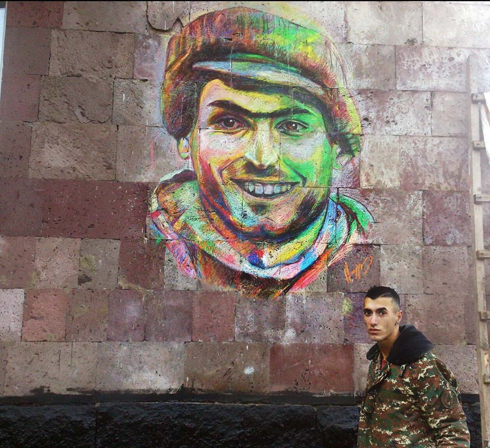 Զինվորն ազատ ժամանակ հայ հերոսներին է պատկերում զորամասի պատերին։ Tert.аm-ին ուղղված հերթական նամակում զինվորը ներկայացրել է իր նոր աշխատանքը՝ Դուշման Վարդանի գրաֆիտին։