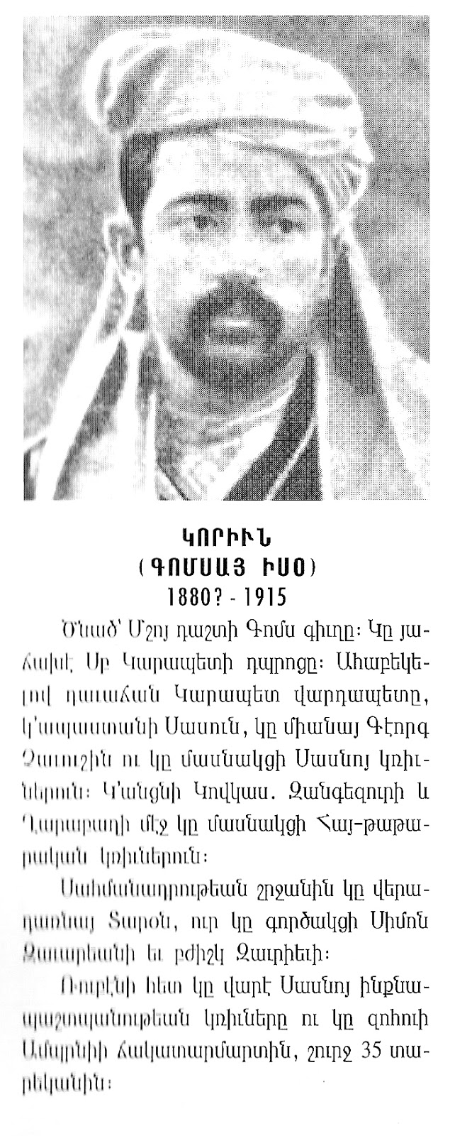 898թ. Ցրոնքի կռվում զոհվեց Ախլաթի և Սասունի ազատագրական պայքարի ռահվիրաներից Գուրգենը (Բաղդասար Մալյան)։ Գուրգենը այդ տարիներին Հրայր Դժոխքի և Աղբյուր Սերոբի գործակիցն էր։ Նրա մահը զգալիորեն ազդեց ազատագրական պայքարի և Սասուն - Ախլաթի հեղափոխական կյանքի կազմակերպման վրա։ Հրայրը, որն անընդհատ աշխատում էր լրացնել Գուրգենի բացակայությունը, ծածուկ քարոզչություններով փորձում էր հուսադրել ժողովրդին։ Սակայն հաջողության հասնելու համար անհրաժեշտ էր նաև պատժել Օսմանյան կառավարության հայ լրտեսներին, քանզի Գուրգենը նույնպես մատնության զոհ էր դարձել։ Հրայրը որոշեց պատժել Ավրանցի Կարապետ վարդապետին, որը կառավարությանը բազում ծառայություններ էր մատուցել` ի վնաս հայ հեղափոխականների: Բանտերը լիքն էին վարդապետի մատնությունների պատճառով կալանված մարդկանցով, որի դիմաց նա թուրքերից ամսական ստանում էր 300 դահեկան։ Կարապետը պետքական գործիք էր կառավարության ձեռքին, ուստի նրա անվտանգությունը պահպանում էին երկու թուրք ոստիկաններ։ Կարապետի սպանության գործը Հրայրը հանձնարարում է իր գաղափարների ամենաջերմեռանդ հետևորդ և տարածող Գոմսա Իսոյին (Իսոյի Կորյուն)։ Վերջինս, գնալով Ավրան գյուղը, իբրև թե գործով, մտնում է վարդապետի տուն և փոխանակ աջը համբուրելու՝ գնդակահարում նրան։ Դեպքը տեղի է ունենում ոստիկանների ներկայությամբ, որոնք կանխարգելիչ ոչինչ չեն հասցնում ձեռնարկել։ Չնայած գյուղում կառավարությունը տեղակայել էր 50 ոստիկանի, բայց Իսոն անվնաս կարողանում է հասնել Մուշի Ղզլաղաճ գյուղ՝ Դժոխք Հրայրին տեղեկացնելու, որ հանձնարարությունը կատարված է։