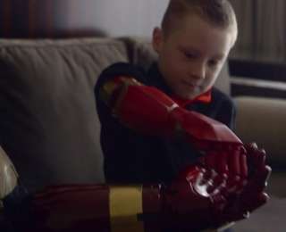 Դաունի կրտսերը որոշեց համագործակցել «Limbitless Solutions» ընկերության հետ, ովքեր 3D տպիչների միջոցով պրոթեզներ են պատրաստում։ «Marvel» ընկերությունը (Երկաթե մարդու մասին կոմիքսները հրատարակող ընկերությունը) թույլատրեց արտադրության մեջ օգտագործել սուպերհերոսի կոստյումը։