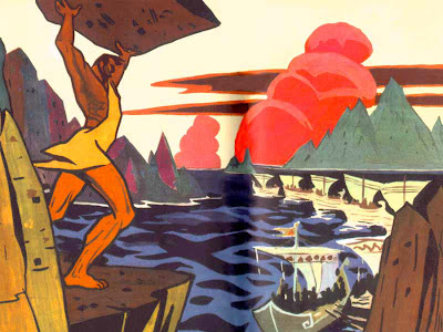Եվ հսկաները երգով ու պարով, խինդով, ծիծաղով ճանապարհ ընկան: