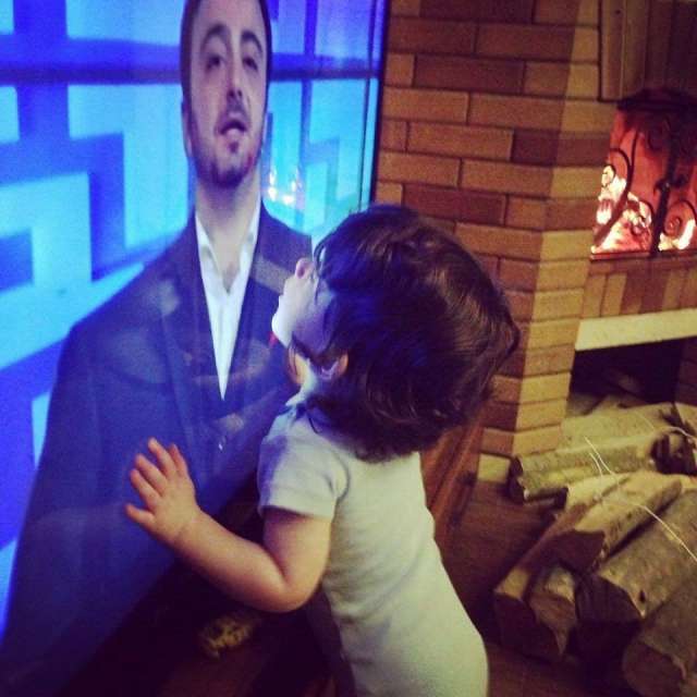 Լուսանկարում փոքրիկը, տեսնելով հոր նկարը հեռուստացույցով, մոտեցել ու համբուրում է վերջինիս:
