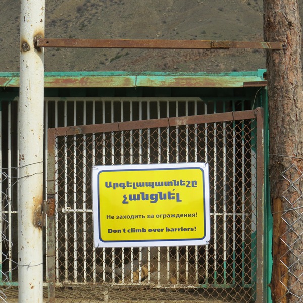 Ապաստարանի սահմանագծին տեղադրված են ապօրինի մուտքն արգելող մի քանի ցուցանակներ: Տեղեկացնում ենք նաև, որ հետևելով անվտանգության սահմանված չափանիշներին, վանդակները, որտեղ ներկայում պահվում են առյուծները, ցանկապատված են դրանցից 3 մետր հեռավորության վրա գտնվող կողպված արգելապատնեշով, որի վրա նույնպես մի քանի տեղերում փակցված են մուտքն արգելող ցուցանակներ: