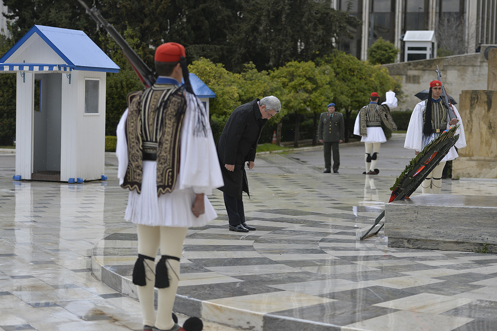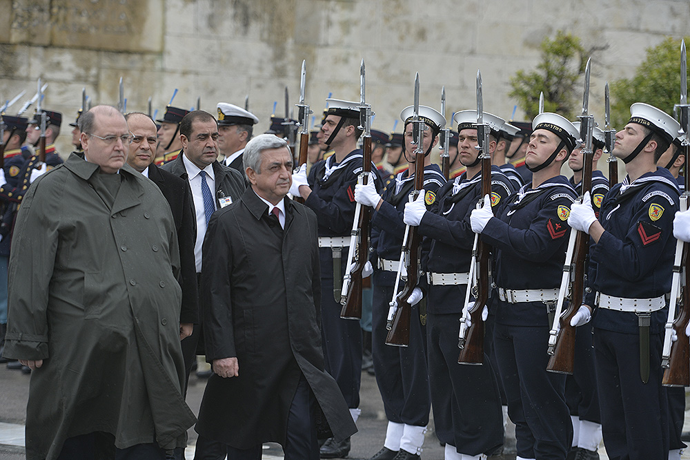 Մինչ բարձր մակարդակի բանակցությունները, Սերժ Սարգսյանը Աթենքում ծաղկեպսակ է դրել Անհայտ զինվորի հուշարձանին և հարգանքի տուրք մատուցել: