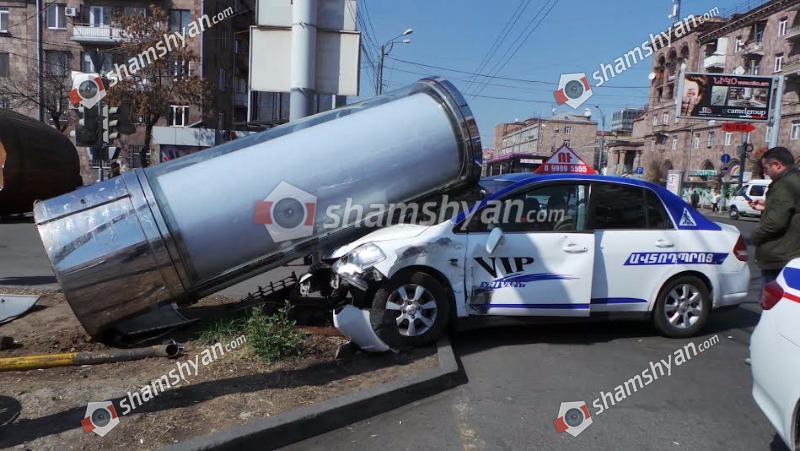 Ինչպես դեպքի վայրից հայտնում է ֆոտոլրագրող Գագիկ Շամշյանը, բախման հետևանքով Nissan-ի վարորդը դուրս է եկել երթևեկելի գոտուց և հարվածել խաչմերուկում տեղադրված գովազդային վահանակին՝ տապալելով այն: Nissan-ի կին վարորդը մարմնական վնասվածքներով տեղափոխվել է «Աստղիկ» բժշկական կենտրոն: