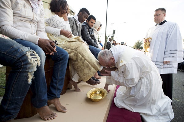 Հռոմի պապ Ֆրանցիսկոսն Ավագ հինգշաբթի լվացել և համբուրել է 12 հավատացյալների` 11 փախստականի և մեկ իտալուհու ոտքերը։