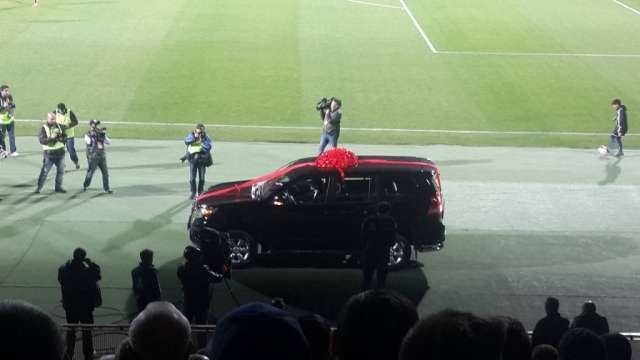 ՀՖՖ նախագահ Ռուբեն Հայրապետյանը Ազգային հավաքականի լեգենդար դարպասապահ Ռոման Բերեզովսկուն հրաժեշտի կապակցությամբ իր յուղաներկ նկարն ու «Toyota prado land cruiser» է նվիրել։ Բերեզովսկին Տարոն Մարգարյանի կողմից պարգևատրվել է Երևանի քաղաքապետի Ոսկե մեդալով։