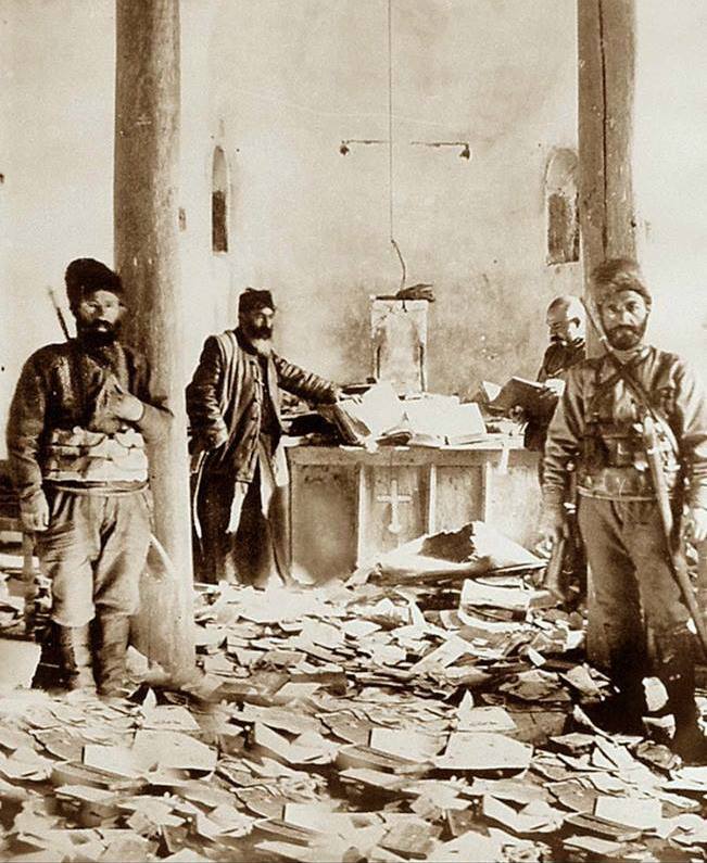 Սմբատ Տեր-Ավետիսյանը և հայ կամավորականները Աղթամարում 1916-ին... 1916 թվականի ամռանը ռուսական զինուժը ռազմակալել էր ամբողջությամբ հայաթափված Արևմտյան Հայաստանի նահանգները, իսկ ռազմական ակտիվ գործողությունները դադարեցվել էին: Այդ ժամանակաշրջանում Արևմտյան Հայաստանի նահանգներում կազմակերպվեցին մի քանի գիտական արշավախմբեր, որի նպատակն էր փաստագրել ավերված տարածաշրջանի հայկական մշակութային արժեքների կորուստներն ու հավաքագրել դեռևս մնացածը: Արշավախմբերից մեկի կազմում էր նաև հնագետ-պատմաբան Սմբատ Տեր-Ավետիսյանը (հետագայում` պատմական գիտությունների դոկտոր, Երևանի համալսարանի հնագիտության ամբիոնի վարիչ), որի ջանքերի շնորհիվ հաջողվեց փրկել ավելի քան հազար հայկական ձեռագրեր, պատմական վավերագրեր և ազգագրական նյութեր։ Ներկայացնում ենք մի լուսանկար 1916 թ. այդ առաքելությունից, որտեղ պատկերված է Սմբատ Տեր-Ավետիսյանը (ձախից երկրորդը՝ ձեռքը գրքերի վրա դրված)՝ երեք հայ կամավորականների ուղեկցությամբ Աղթամարի Սուրբ Խաչ եկեղեցում մազապուրծ եղած հայկական ձեռագրերն ու հնատիպ գրքերը հավաքագրելիս: