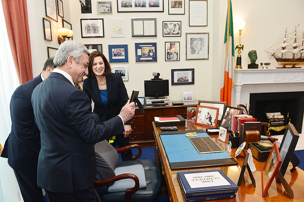 Հանրապետության Նախագահը նույն օրը այցելել է Էդվարդ Քենեդիի անվան ինստիտուտ, որտեղ նրան դիմավորել է ԱՄՆ սենատոր Թեդ Քենեդիի այրի Վիկտորիա Քենեդին և հրավիրել շրջայցի: Ավարտին Սերժ Սարգսյանը գրառում է կատարել ինստիտուտի հուշամատյանում:«Ինձ համար խորհրդանշական է գտնվել Էդվարդ Քենեդիի անունը կրող ինստիտուտում. մեծ ամերիկացու, ով իր գործունեությամբ լիարժեքորեն վաստակել է «Հայաստանի բարեկամ» լինելու կոչումը: