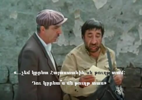 Իսկ ինքդ մենակ մի բան ես ի զորու ասել՝ Ֆրունզիկի հերոս Նիկոլի խոսքերով, թե էլ «չեմ կըրնա Հայաստանին սև թուղթ տամ»: Գալիս է էդ պահը, երբ զգացողություն է, թե նշածս ու չնշածս ամեն ինչի համար «փակվում ենք» մեր ամենաարժեքավոր ռեսուրսով՝ իդեալական հայի տեսակ ներկայացնող երիտասարդներով: Իսկ դա արդեն ոչ հողերի հարց է, ոչ խաղաղության, ոչ որևէ այլ վսեմ բանի, այլ ընդամենը ինքներս մեզ վերջնականապես վարի տալու՝ ու ամենևին էլ ոչ թշնամուն: