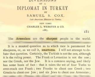 Ահա, թե ինչպես է արտահայտվում հայերիս մասին Օսմանյան կայսրությունում ԱՄՆ դեսպան Սեմյուել Քոքսն իր «Diversions of a Diplomat in Turkey» գրքում (1887թ.):