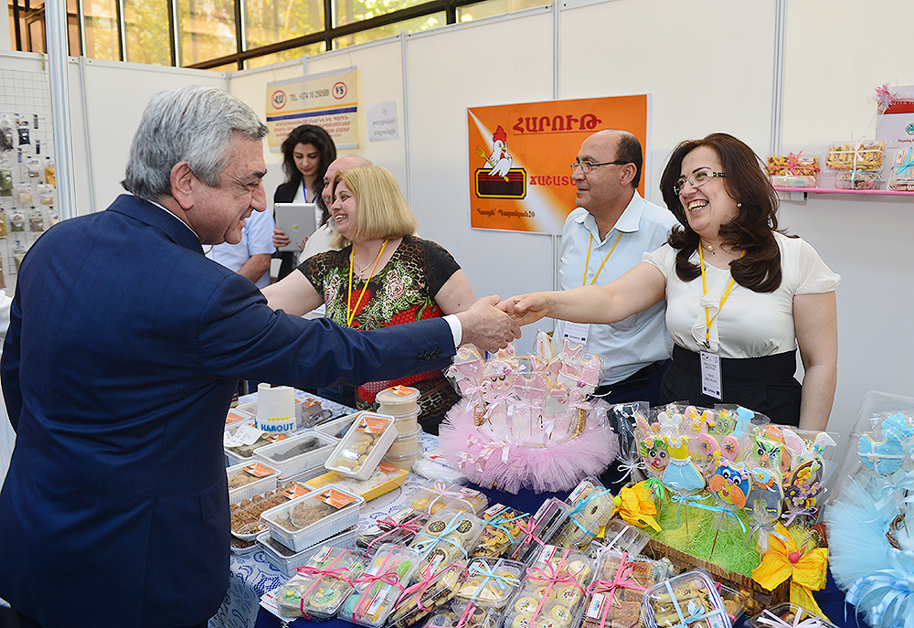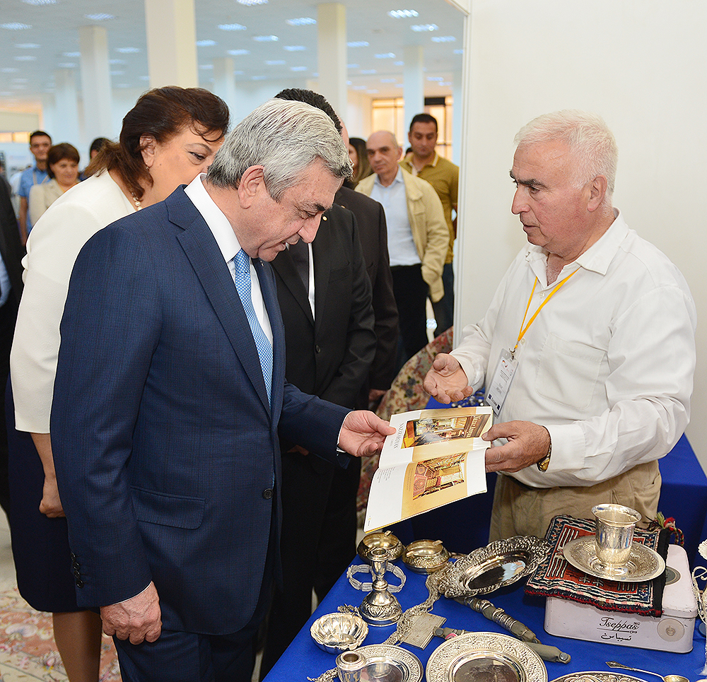 Տպագրության, հրատարակչության, ոսկերչության, փայտամշակման, զբոսաշրջության, ասեղնագործության, սարքավորումների արտադրության, հաստոցաշինության և այլ ոլորտներում արտադրանք թողարկող մեր հայրենակիցների ջանքերը Սերժ Սարգսյանը ոգևորիչ է համարել և բարձր գնահատել ներկայացված ապրանքների որակական հատկանիշները: Նախագահը սիրիահայ ձեռներեցների հետ քննարկել է իրենց արտադրանքի իրացման և արտահանման հնարավորություններին վերաբերող հարցեր: