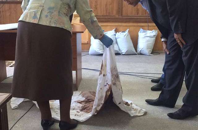 Քրեական գործին, որպես իրեղեն ապացույցներ, կցված են մի շարք իրեր, այդ թվում՝ գործով տուժողների զինվորական բաճկոններ: Դատարանում հետազոտվեց Հայկազ Բարսեղյանի անկողնու ներքնակի վրայի սավանը, որն ամբողջությամբ արյան մեջ էր: Ապացույցների շարքում էր Բարսեղյանի արյունոտ բարձը, դիակի հագից հանված զինվորական բաճկոնը: Բաճկոնի ուսումնասիրության ընթացքում ամբաստանյալ Վաչե Սահակյանի պաշտպան Արմեն Նադիրյանն ասաց, որ դրա աջ թևքի ներսային և մակերսային կողմից ակնառու արյան հետքեր չկան: Նշենք, որ ըստ քրեական գործի նյութերի՝ 408 ննջարանում իր անկողնու վրա պառկած վիճակում բռնել են Հայկազ Բարսեղյանի ոտքերը, ձեռքերը, փակել բերանը, սուր կտրող գործիքով կտրել աջ ձեռքի արյունատար անոթը: Նիստին մասնակցող փորձագետները, սակայն, նշեցին, որ բաճկոնի ներսում հետք կա: Ապացույցների շարքում էին նաև քուղերը: