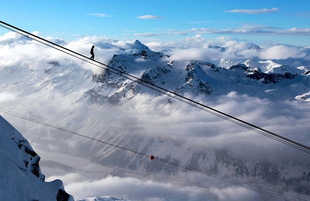 | Ֆրեդի Նոկը քայլում է պարանի վրայով, որը գտնվում է ծովի մակերևույթից 3303 մետր բարձրության վրա (Շվեյցարիա): |