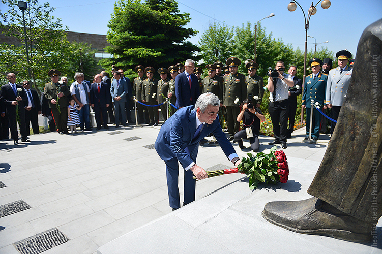 ՀՀ Նախագահը ծաղիկներ է դրել արձանին և հարգանքի տուրք մատուցել ականավոր զորավարի հիշատակին: