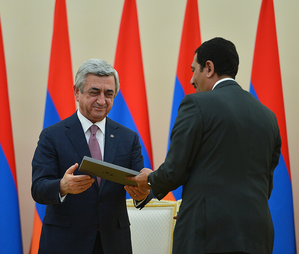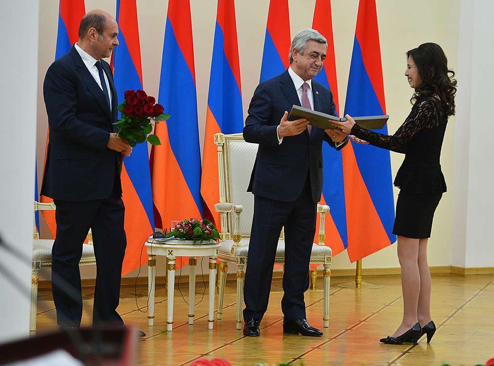 ՀՀ Նախագահի նստավայրում այսօր տեղի է ունեցել Հայաստանի Հանրապետության Նախագահի 2015 թվականի մրցանակների հանձնման արարողությունը: Մի շարք բնագավառներում ներդրած նշանակալի ավանդի համար շնորհված մրցանակները՝ համանուն վկայագիրը և դրամական պարգևը, մրցանակակիրներին հանձնել են Նախագահ Սերժ Սարգսյանը և «Ռոբերտ Պողոսյան և որդիներ» հիմնադրամի ներկայացուցիչ, սփյուռքահայ բարերար Ալբերտ Պողոսյանը: Սերժ Սարգսյանը շնորհավորել է մրցանակի արժանացածներին, նոր հաջողություններ մաղթել նրանց հետագա գործունեության ընթացքում: