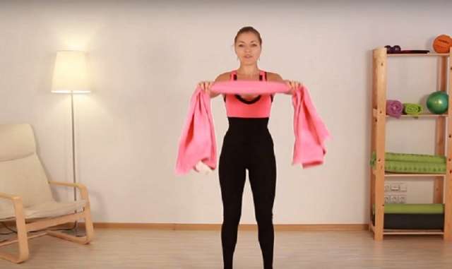 Բռնեք սրբիչը երկու հակառակ կողմերից և ձեռքերը վերև բարձրացրեք: Աշխատեք ձգել սրբիչը որքան հնարավոր է ուժեղ: Այդ դիրքով մնացեք 30 վայրկյան, հետո մի փոքր ընդմիջեք և կրկնեք չորս անգամ: