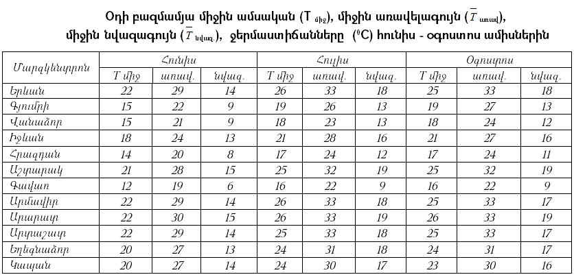 Ըստ կանխատեսման՝ հունիսին օդի միջին ամսական ջերմաստիճանը սպասվում է նորմային մոտ, տեղումների քանակը՝ նորմայի սահմաններում (Վայոց ձորում և Սյունիքում՝ նորմայից պակաս):